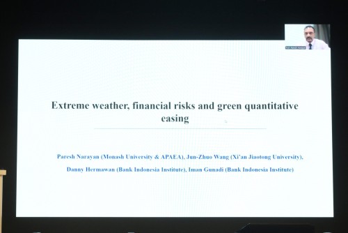 本次會議由金融學院教授周泳宏主持。主旨演講環節邀請陳家樂教授、魏國強教授,以及莫納什大學教授、Pacific-Basin Finance Journal特刊編輯Paresh Kumar Narayan緊扣金融市場不確定性與發展核心主題展開深度解析。陳家樂教授剖析香港ETF市場發展與股票印花稅影響,為市場穩定發展提出施策建議;魏國強教授指出縱向競爭與系統性風險關聯,實證證實上下游集中度推高行業風險溢價,填補產業鏈風險傳導研究空白;Paresh Kumar Narayan教授講解有關極端天氣、金融風險與綠色量化寬鬆的前沿研究成果,聚焦極端天氣對金融風險的衝擊,探討綠色量化寬鬆政策的緩解效果,為氣候變化背景下的金融穩定治理提供新視角。