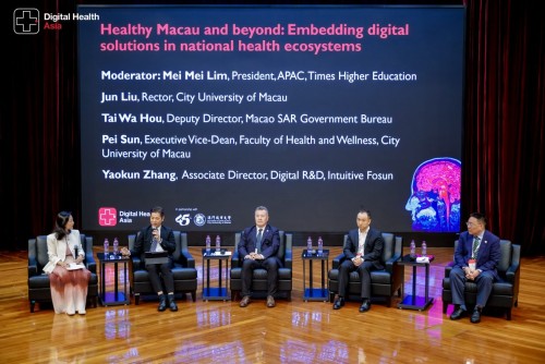 其中,今天下午的研討會以“健康澳門 放眼世界:將數字解決方案融入國家健康生態系統(Healthy Macau and beyond: Embedding digital solutions in national health ecosystems)”為主題,由泰晤士高等教育亞太區總裁Mei Mei Lim主持,特邀澳門衛生局副局長戴華浩、城大校長劉駿、直觀復星醫療器械技術(上海)數字研發副總監張耀坤,以及城大大健康學院執行副院長孫沛,圍繞《健康澳門藍圖》的實施路徑、現存挑戰與未來願景展開了深入對話,政產學研界共同探討數字技術與人才培養如何賦能區域及國家健康韌性建設。
